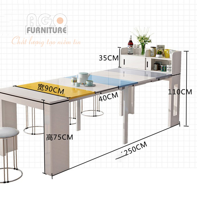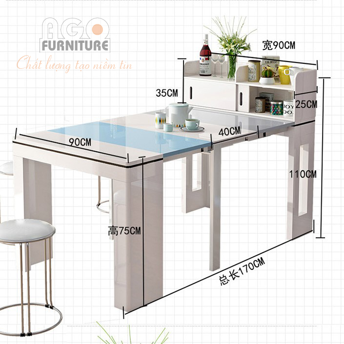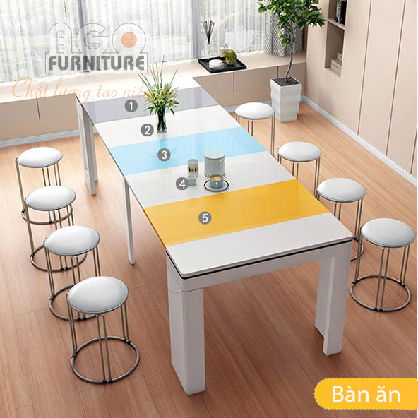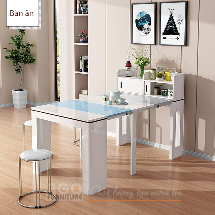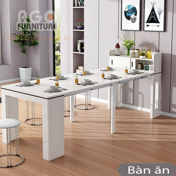 Bàn ăn thông minh kéo dài là sản phẩm nội thất được thiết kế cùng với nhiều chức năng sử dụng. Bên cạnh việc trở thành bàn ăn, sản phẩm cũng có thể sử dụng để làm bàn trà hoặc bàn làm việc.