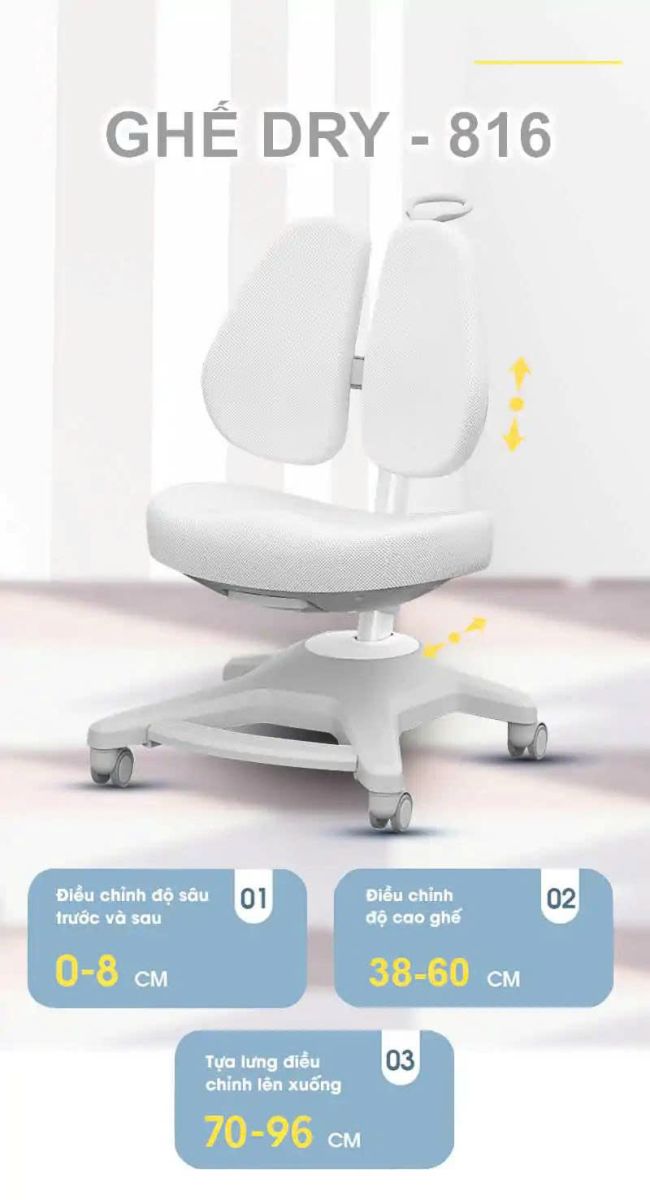 - Chế độ: Nâng hạ chiều cao mặt bàn 520–760mm – Chiều cao mặt ghế: 380–600mm, điều chỉnh độ nghiêng mặt bàn từ 0 đến 60 độ
