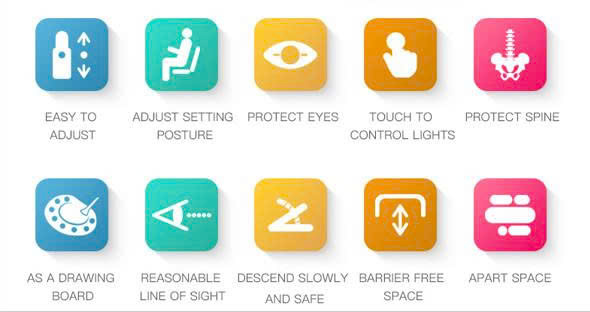 Chiều cao của bàn nâng hạ tùy theo chiều cao của trẻ để phát triển tư thế chuẩn; góp phần chống cận thị cho trẻ từ 2 đến 5 tuổi, định hình cột sống giai đoạn từ 6 đến 12 tuổi, phát triển cơ thể từ 12 đến 18 tuổi.