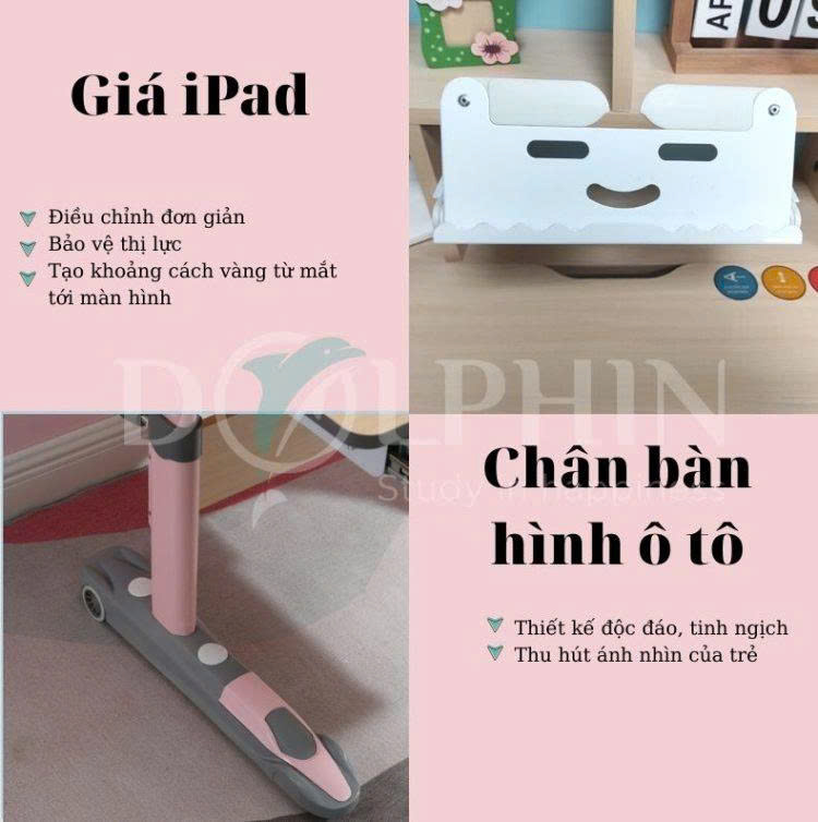 Giá dể ipad tích hợp khoảng cách vàng từ mắt tới màn hình; giúp con không bị cận thị trong quá trình sử dụng ipad và điện thoại.