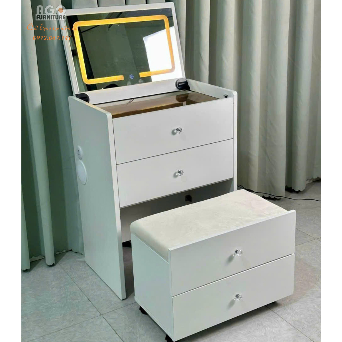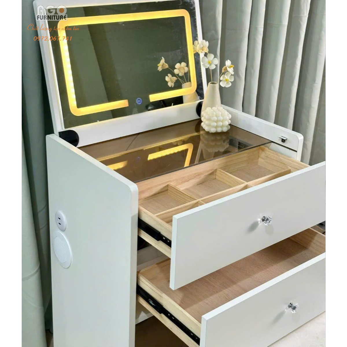AGO Furniture là đơn vị chuyên cung cấp nội thất gia đình với đầy đủ các sản phẩm như bàn trang điểm, giường ngủ, bàn học, tủ quần áo,… trong đó Bàn phấn hiện đại nhập khẩu là một trong những sản phẩm đang được bán chạy nhất tại cửa hàng của chúng tôi. Hãy liên hệ với AGO Furniture ngay hôm nay để nhận những ưu đãi tốt nhất.