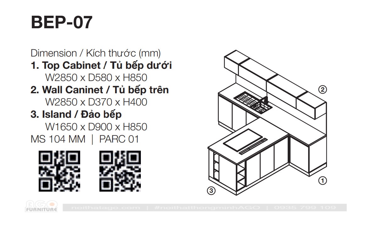 | Tủ bếp trên | W2850 x D370 x H400 |