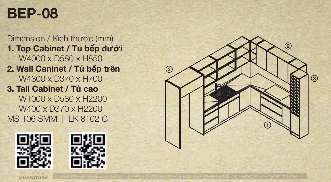| Tủ bếp trên | W4300 x D370 x H700 |