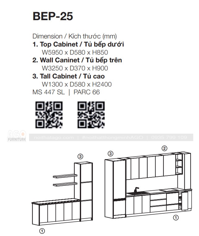| Tủ bếp dưới | W5950 x D580 x H850 |