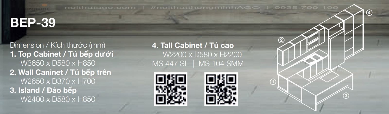 Đây là không gian được đội ngũ nhân viên thiết kế với kích thước W2400 x D580 x H850 phù hợp với không gian gia đình bạn. Không gian đảo bếp được thiết kế một cách thoải mái nhất giúp cho bạn có thể dễ dàng di chuyển qua trong việc nấu nướng thức ăn.