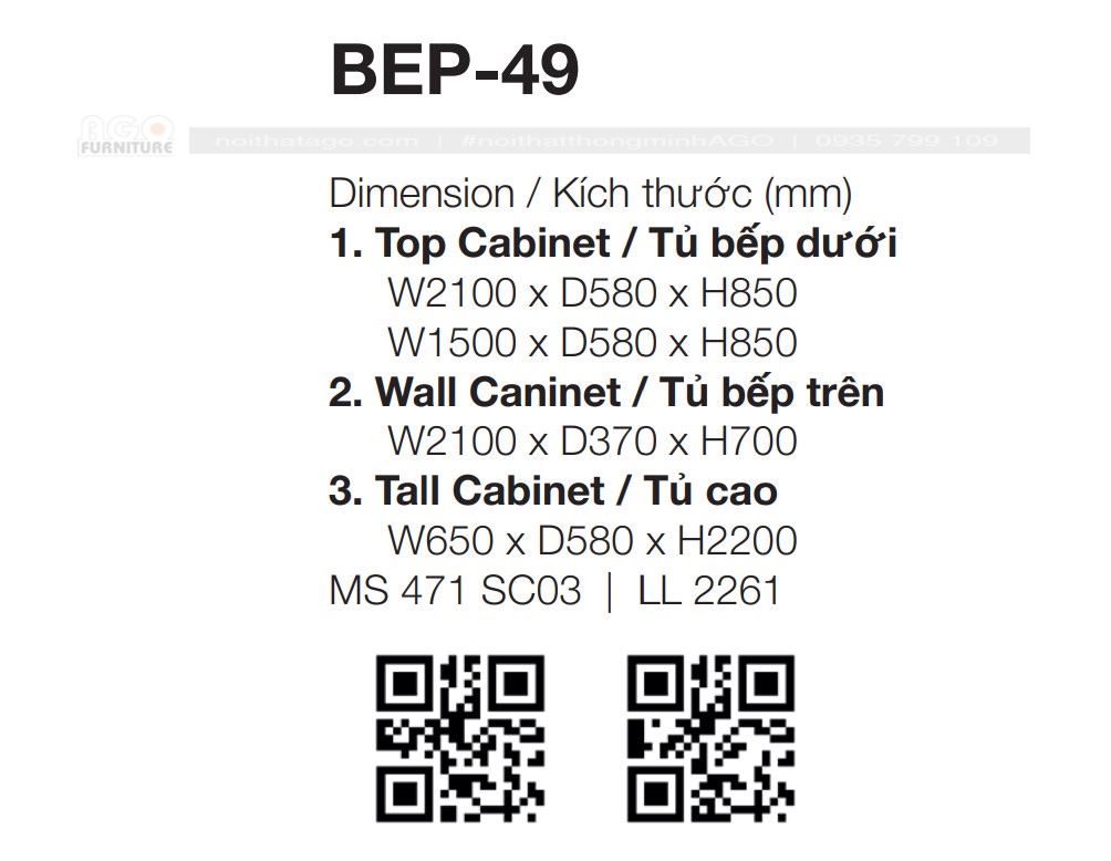 Nếu bạn đang lo ngại diện tích bếp nhà bạn có quá thì tủ bếp này chính là giải pháp tối ưu cho bạn. Hãy liên hệ ngay với nội thất Ago để được tư vấn và được cung cấp sản phẩm và giá tốt nhất.