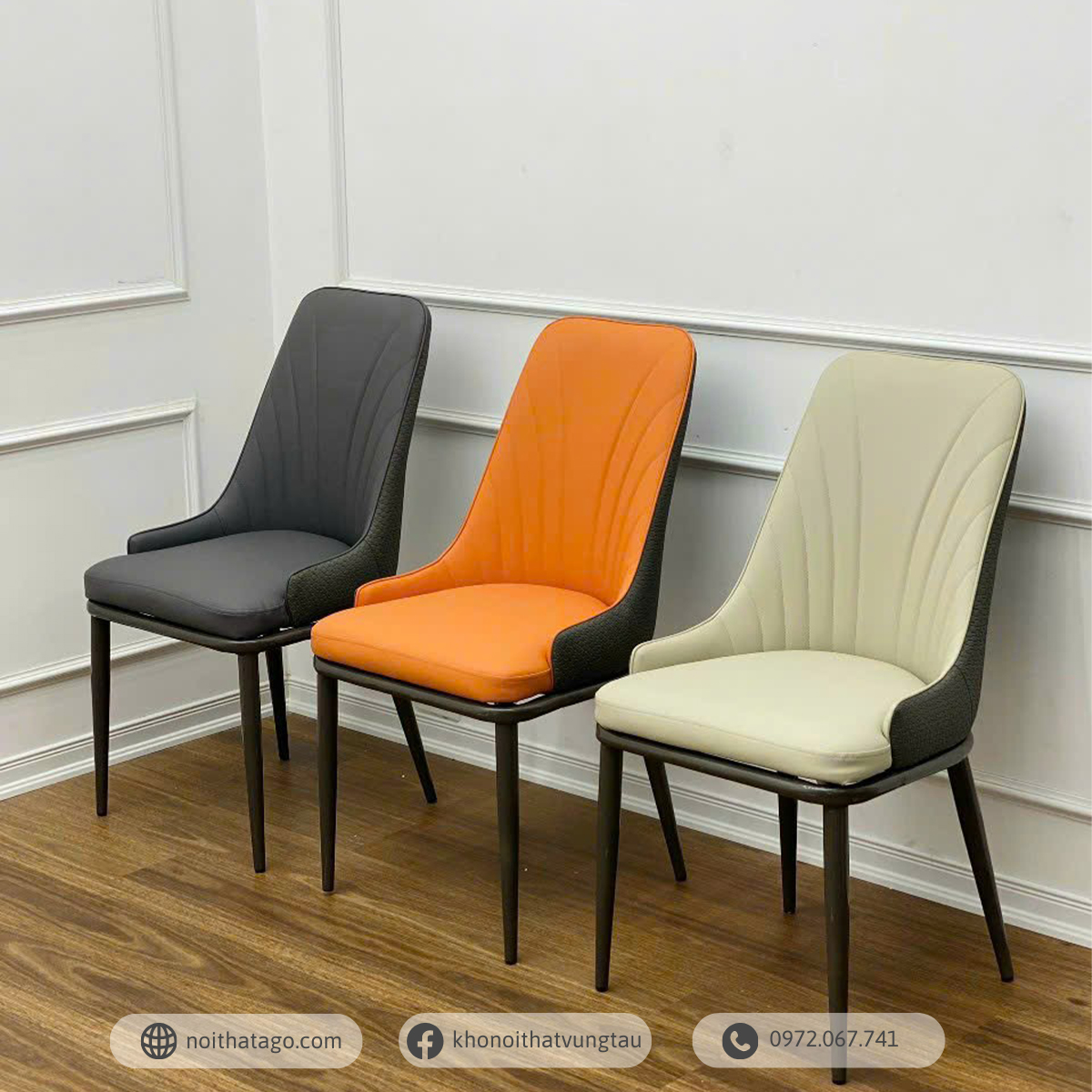 - Chất liệu ghế: Mặt ghế bọc da công nghiệp, chân sắt sơn tĩnh điện