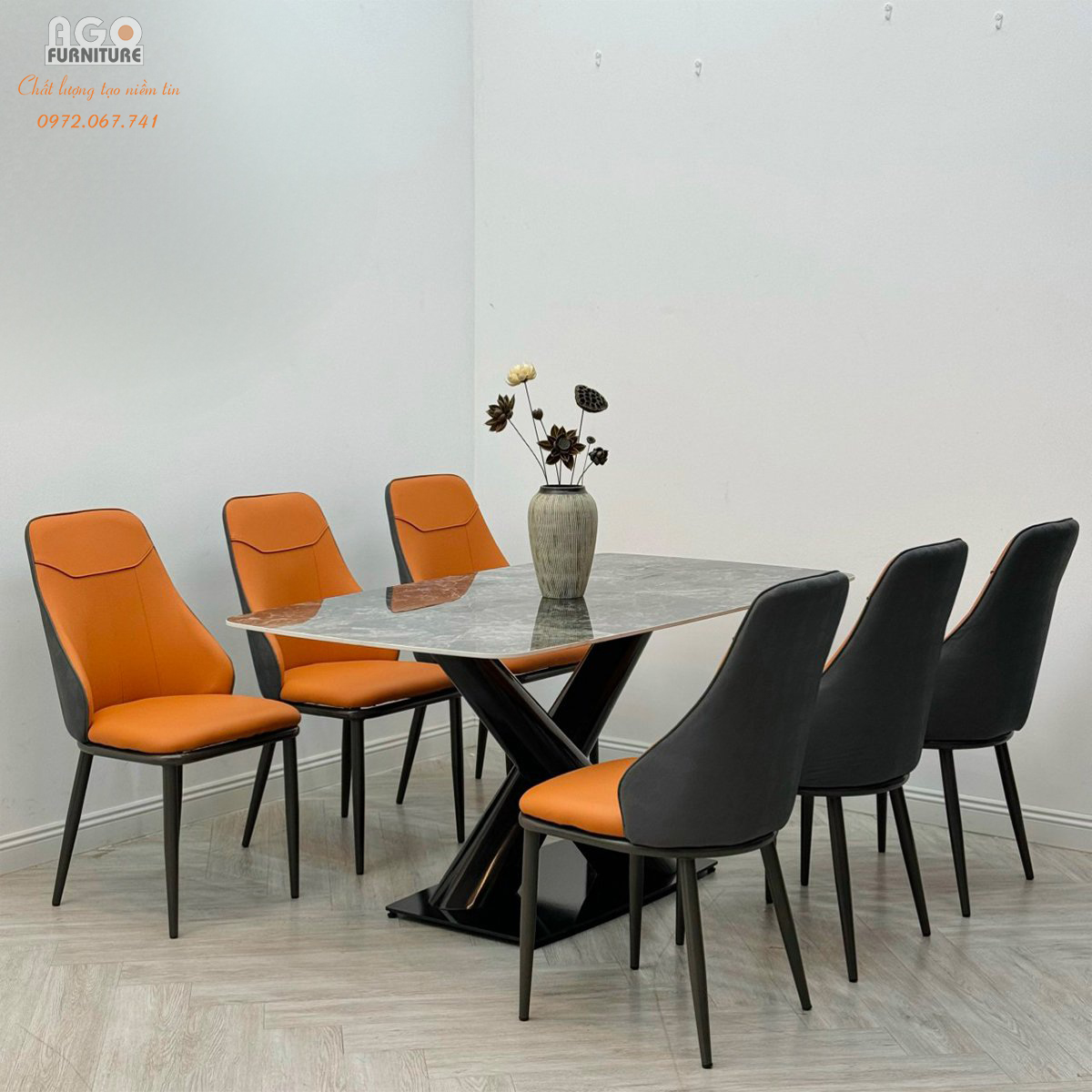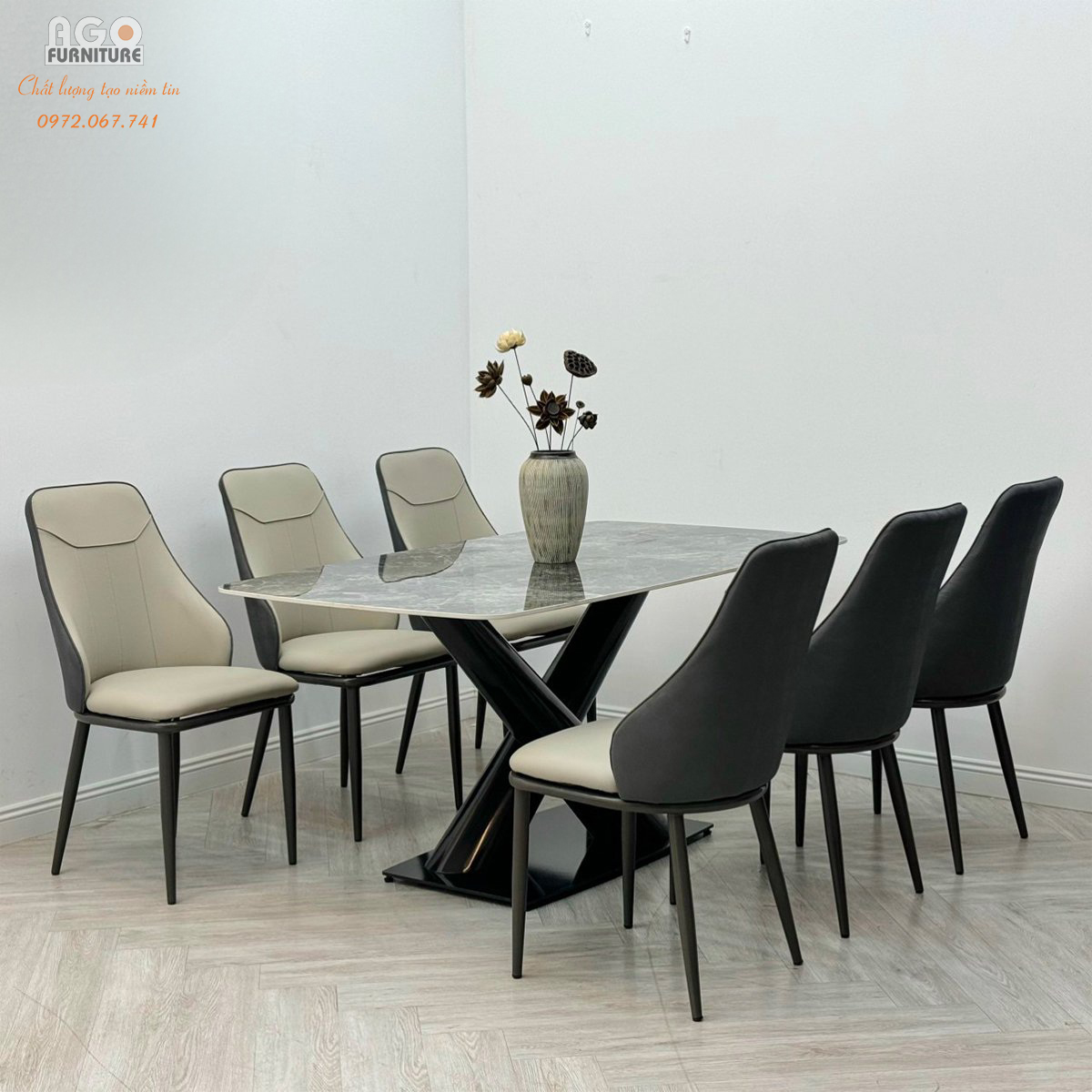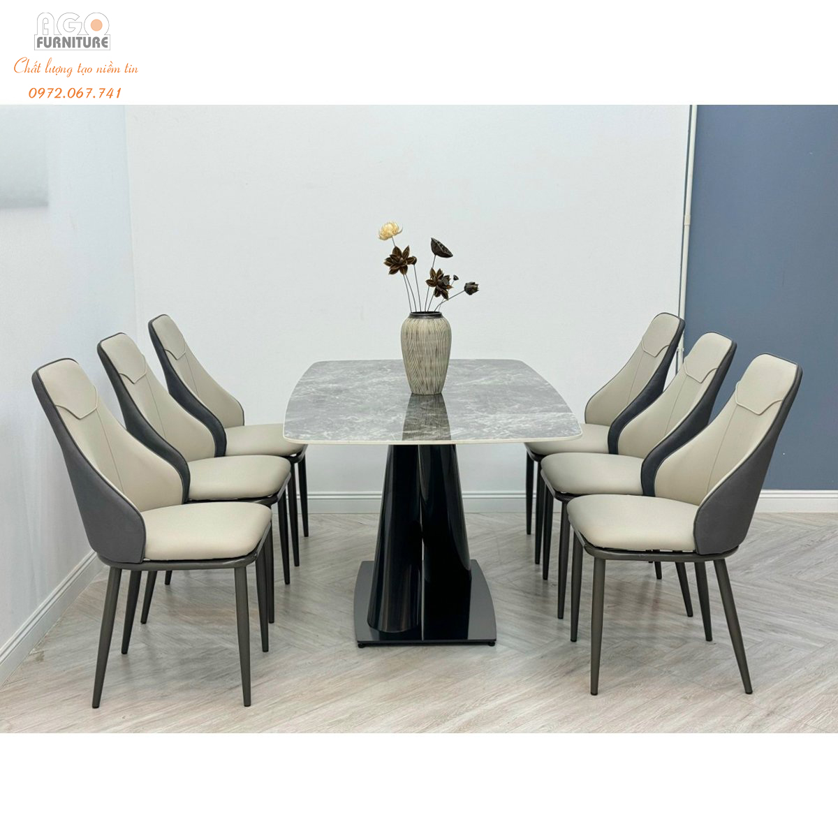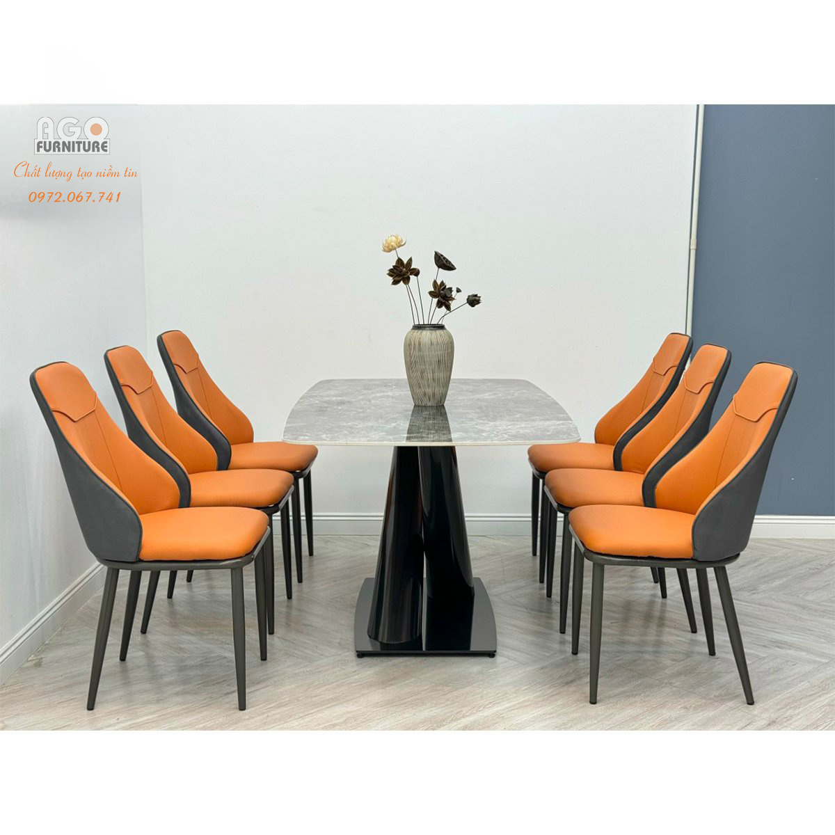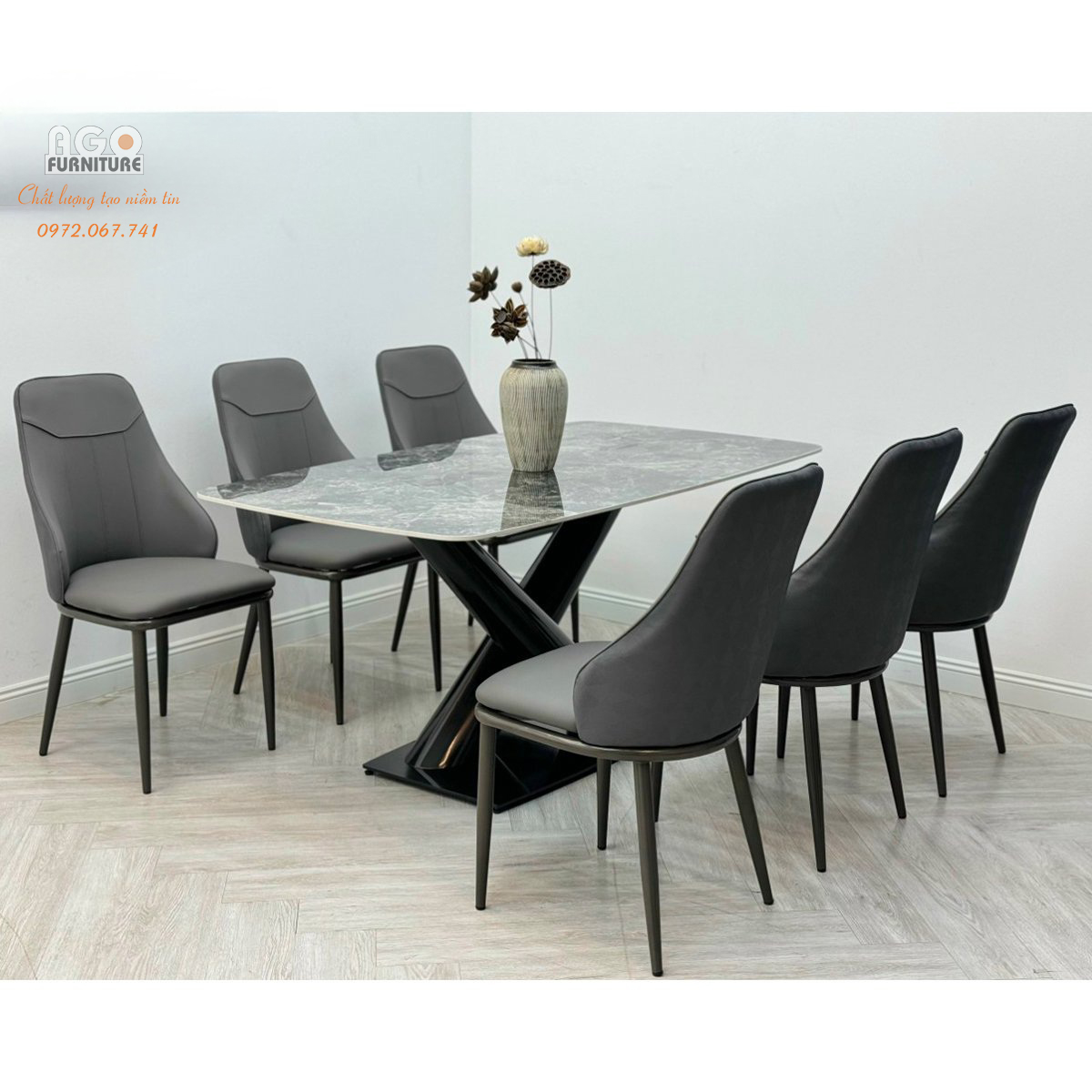 Bộ bàn ăn, Bộ bàn ăn Vũng Tàu, Bộ bàn ăn hiện đại Vũng Tàu, Bàn ăn nhập khẩu Vũng Tàu, Ghế ăn nhập khẩu Vũng Tàu, Nội thất Vũng Tàu Bộ bàn ăn mặt đá kết hợp 6 ghế nhập khẩu cao cấp | CKA-612 tại Nội Thất AGO