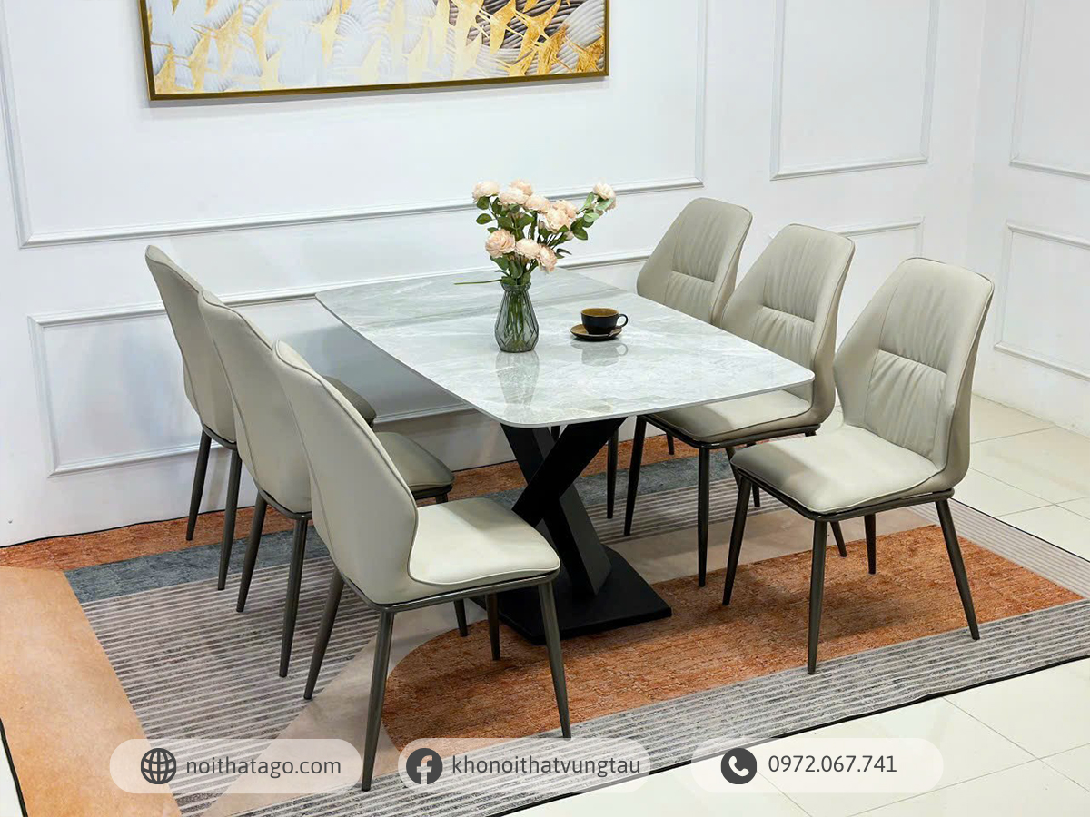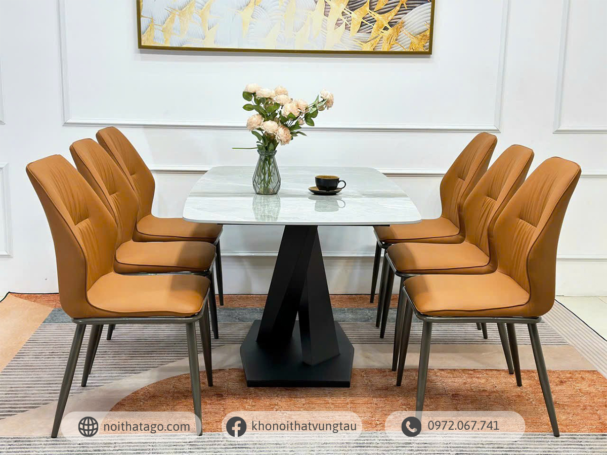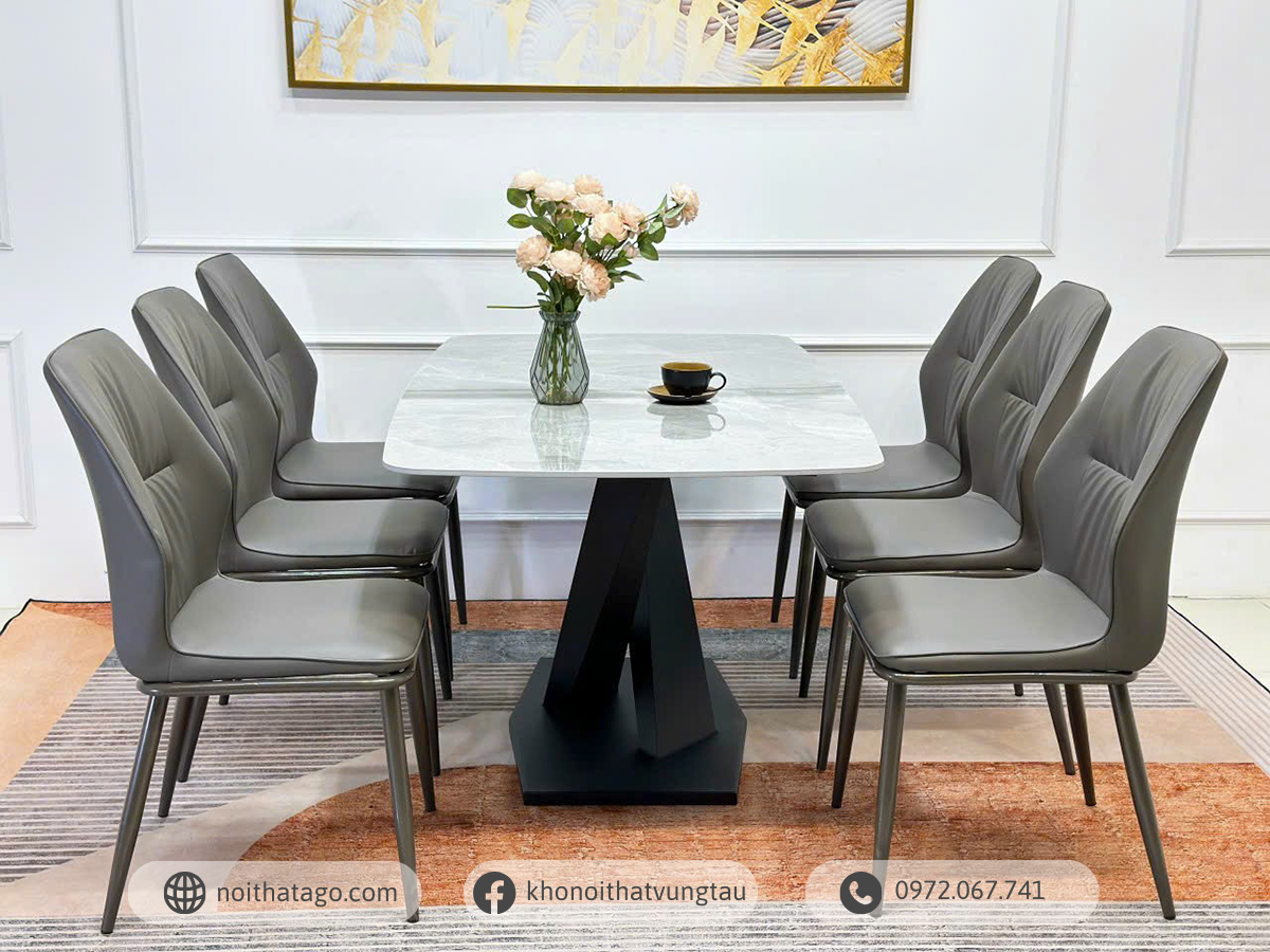 Bộ bàn ăn, Bộ bàn ăn Vũng Tàu, Bộ bàn ăn hiện đại Vũng Tàu, Bàn ăn nhập khẩu Vũng Tàu, Ghế ăn nhập khẩu Vũng Tàu, Nội thất Vũng Tàu Bộ bàn ăn mặt đá kết hợp 6 ghế nhập khẩu cao cấp | CKA-620 tại Nội Thất AGO
