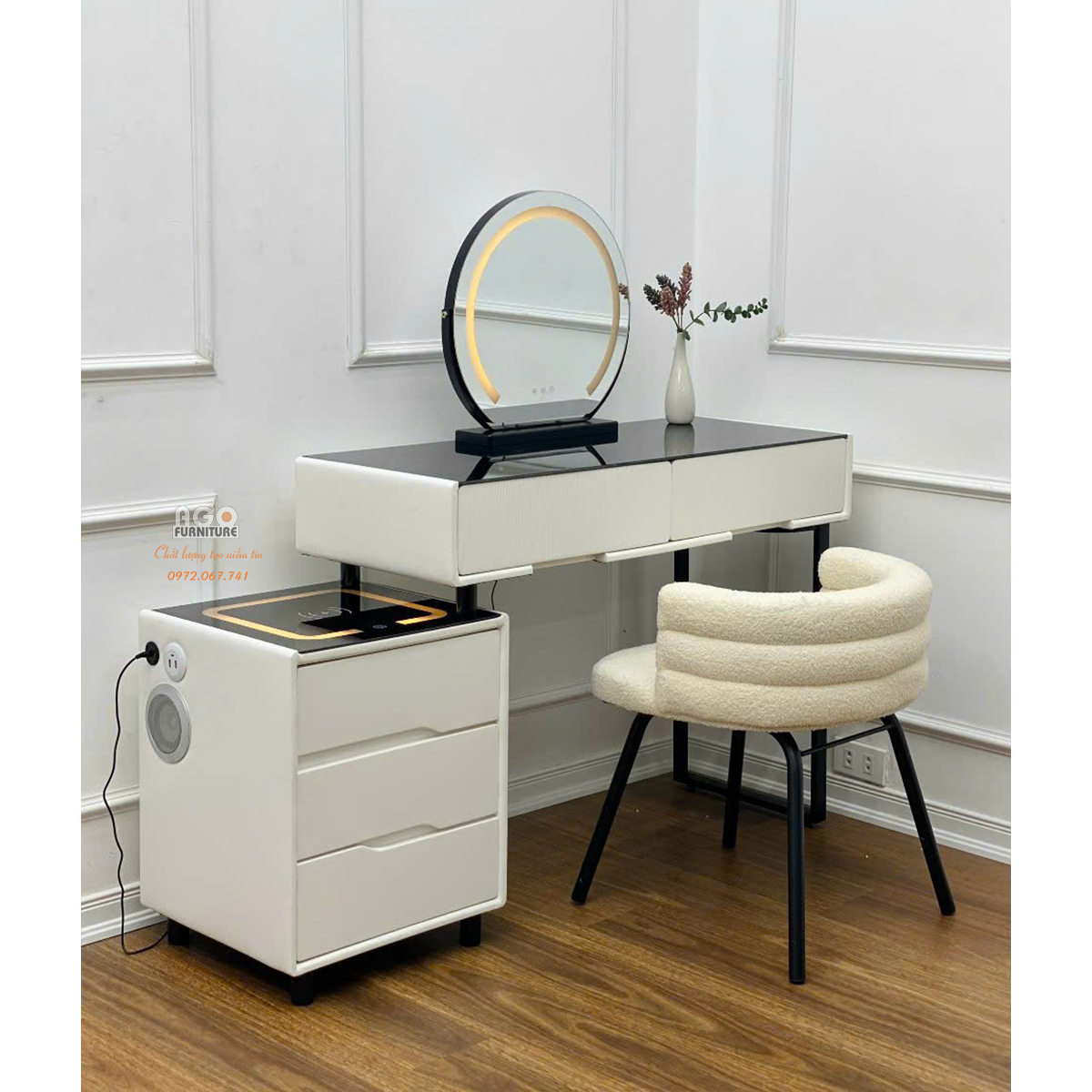 Bàn trang điểm nhập khẩu thông minh có loa Bluetooth, gương led, tab sạc cảm biến Bàn trang điểm giá rẻ tại Kho Nội Thất Vũng Tàu AGO, Bàn trang điểm Vũng Tàu, Bàn phấn Vũng Tàu, Nội Thất Vũng Tàu