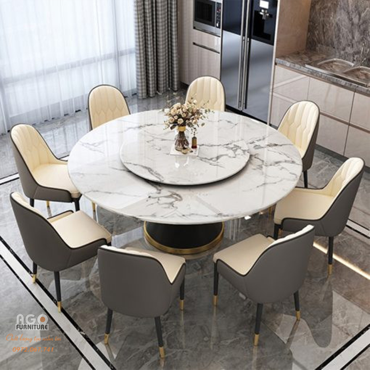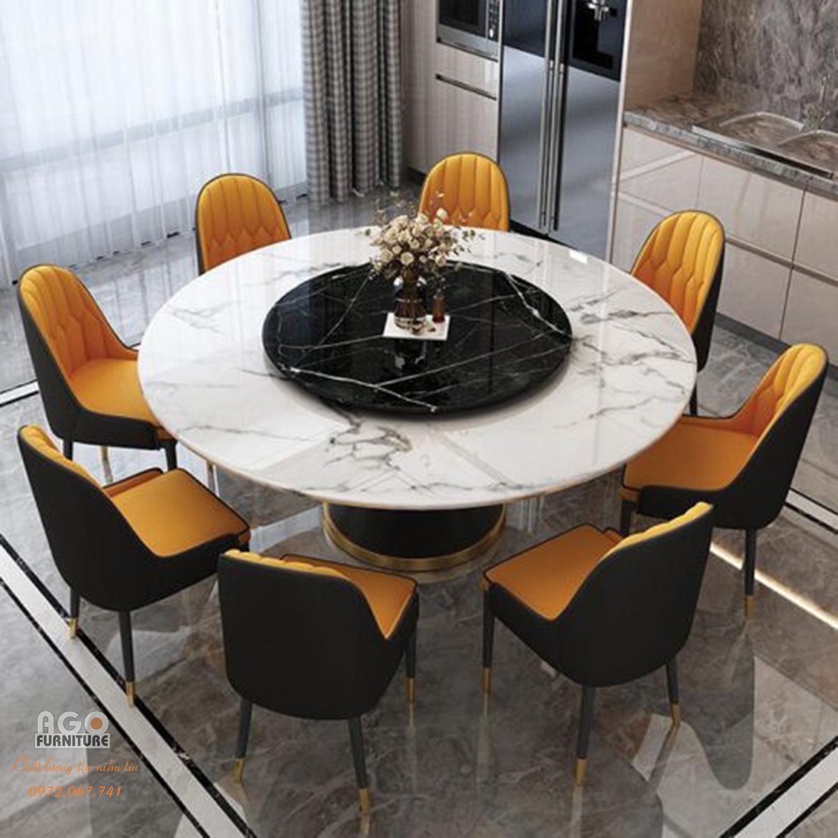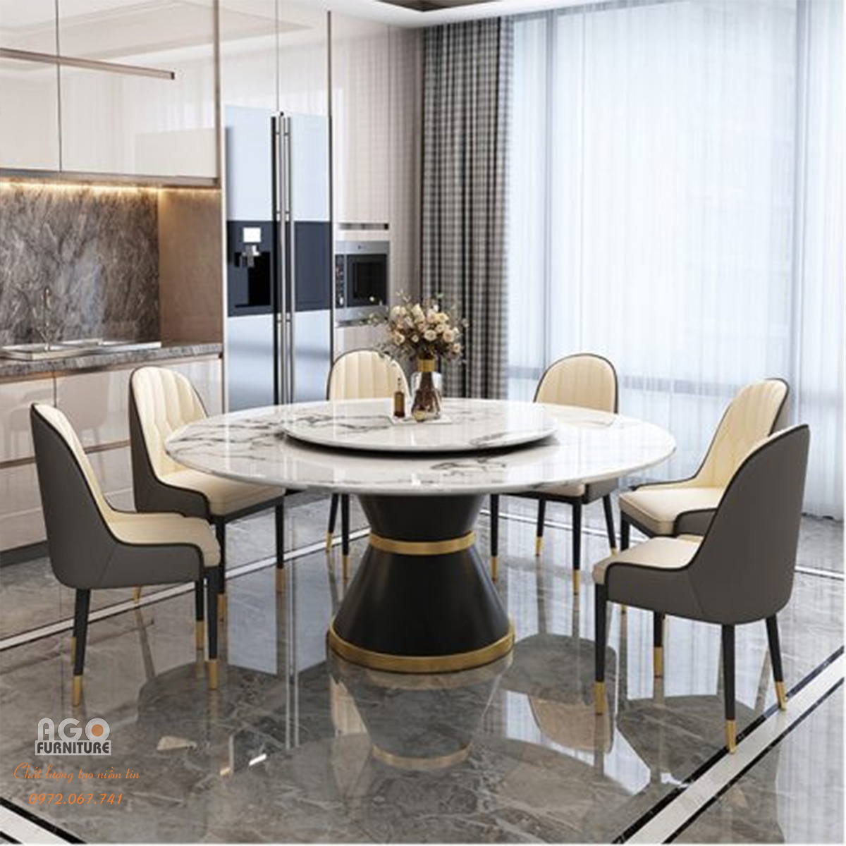 Bộ bàn ăn, Bộ bàn ăn Vũng Tàu, Bộ bàn ăn hiện đại Vũng Tàu, Bàn ăn nhập khẩu Vũng Tàu, Ghế ăn nhập khẩu Vũng Tàu, Nội thất Vũng Tàu Bộ bàn tròn mâm xoay kết hợp 6 ghế nhập khẩu cao cấp | CKA-640 tại Nội Thất AGO