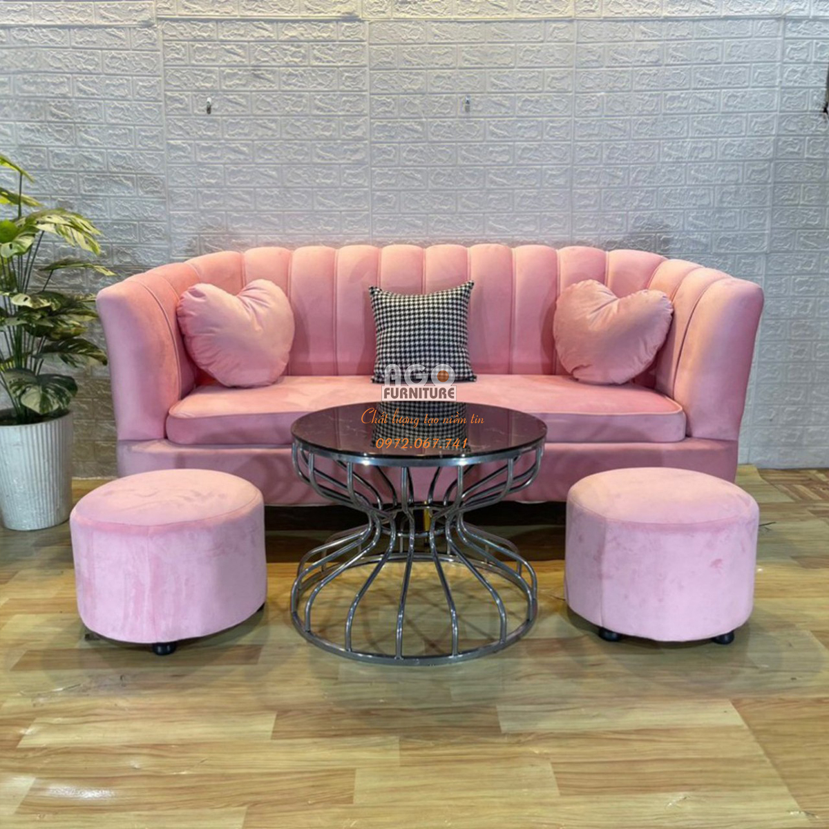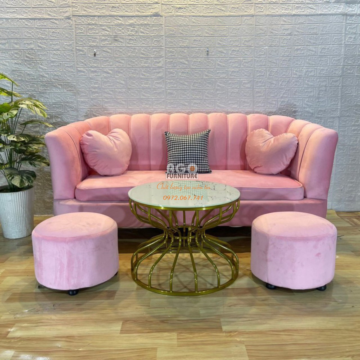 Combo Sofa sò 180 kết hợp bàn sofa đôi - Hồng