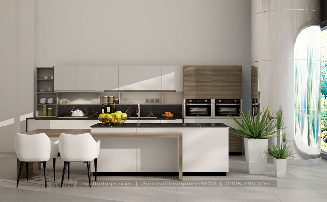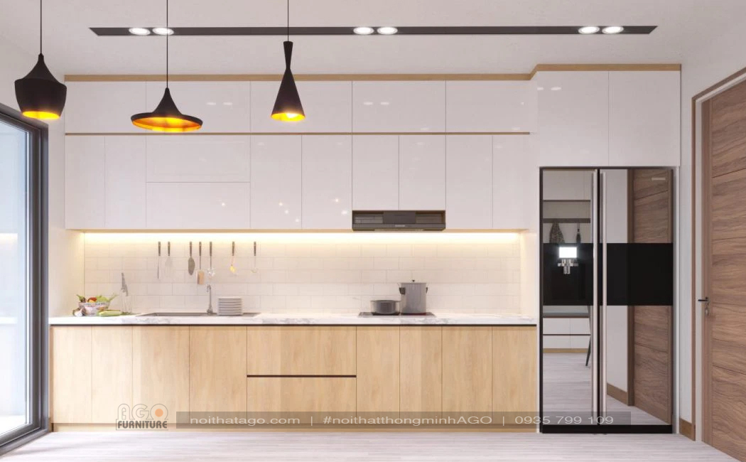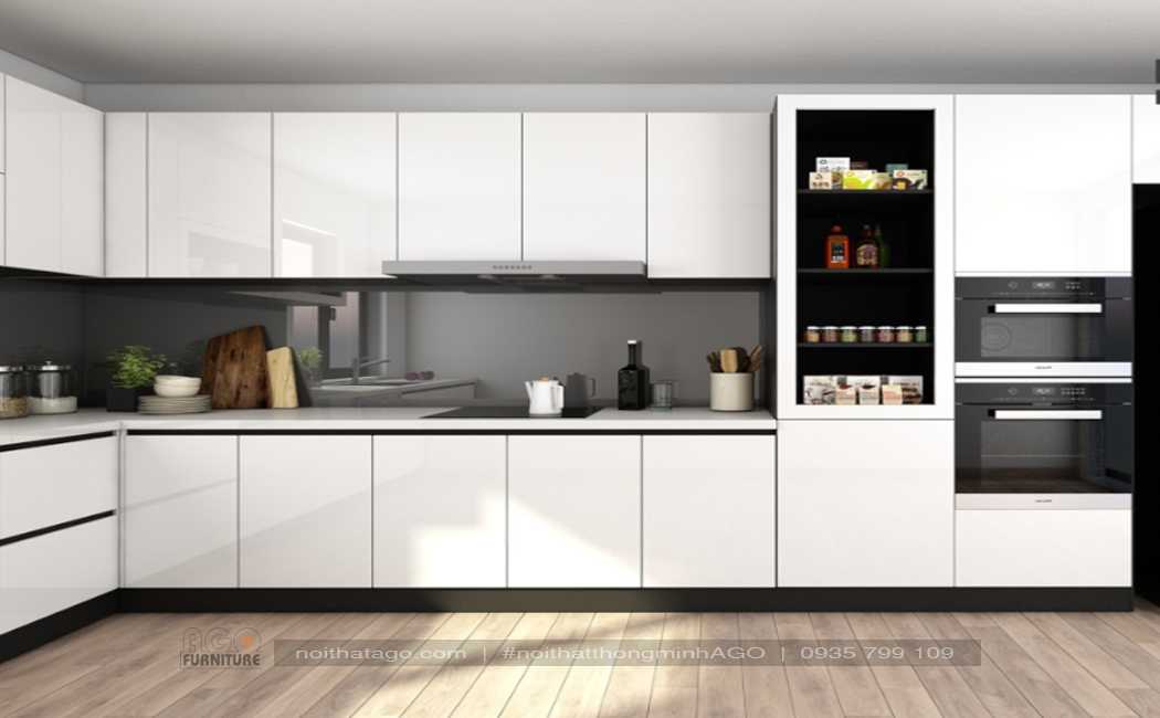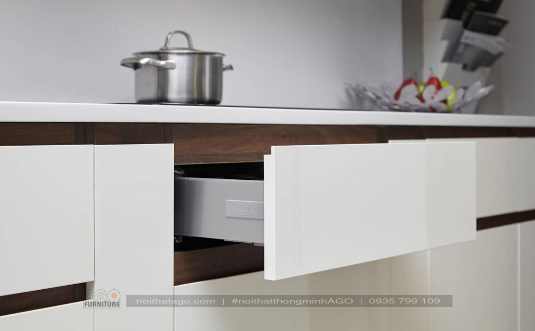 Vì khu vực bếp là nơi diễn ra công việc nấu nướng hàng ngày nên các thiết bị trong nhà là nơi rất dễ bám, dính dầu mỡ. Thiết kế tủ bếp không tay vịn có bề mặt nhẵn và mịn giúp hạn chế các góc, khe hở bám bẩn, giúp việc vệ sinh tủ bếp trở nên dễ dàng và nhanh chóng.