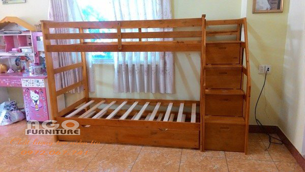 Giường Tầng, Giường Tầng Trẻ Em, Giường Tầng cho Bé, Giường Tầng Gỗ Thông Vũng Tàu, Giường Tầng Vũng Tàu, Giao và lắp MIỄN PHÍ nội thành Tp. Vũng Tàu Giường 2 tầng xuất khẩu AGO-165 tại Nội Thất AGO