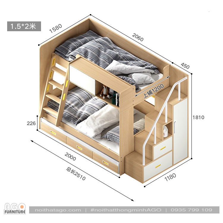 | Tên sản phẩm | Giường tầng đa chức năng dành cho bé yêu | AGO-KID-GT24 |