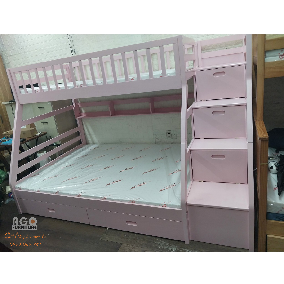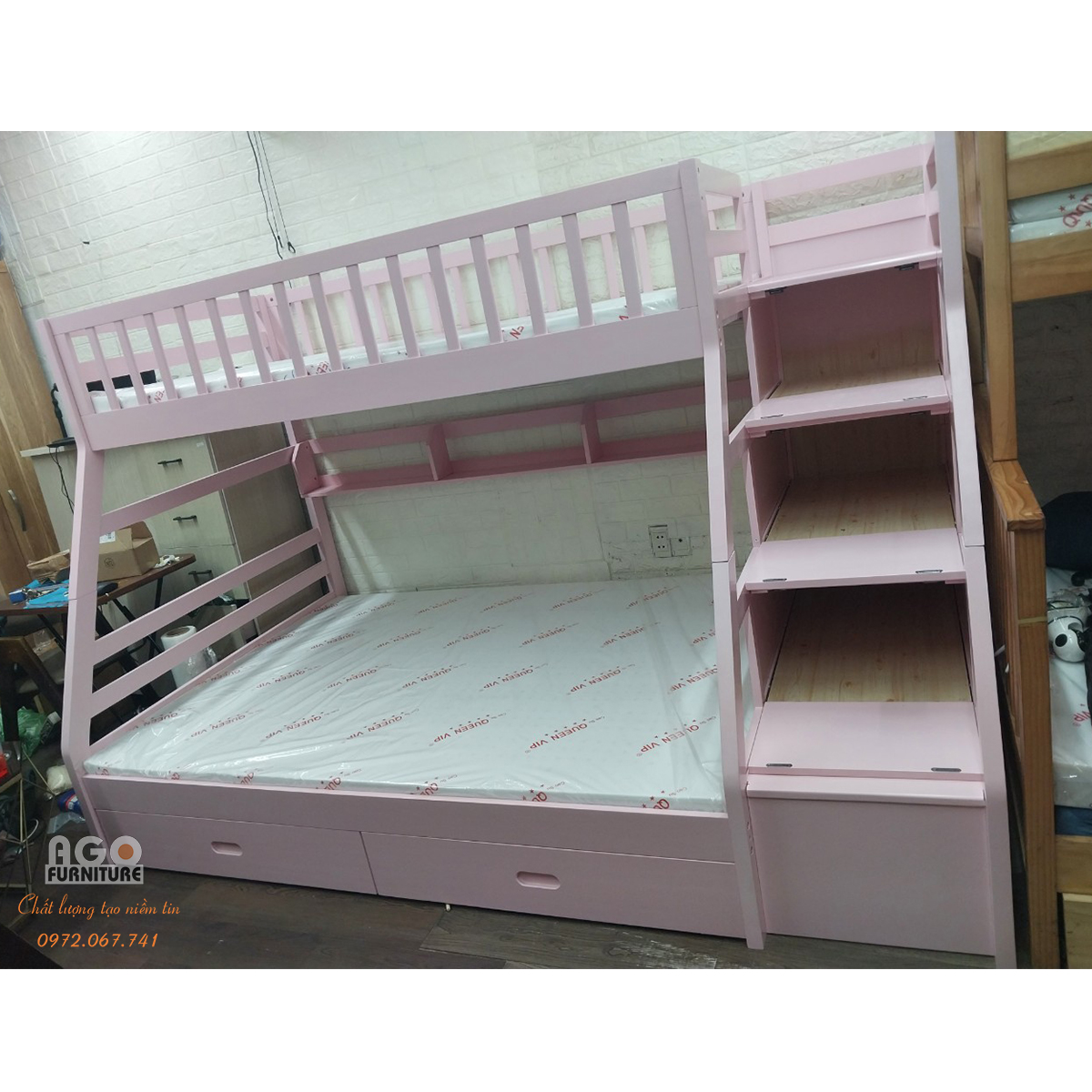 AGO Furniture là đơn vị chuyên cung cấp nội thất gia đình với đầy đủ các sản phẩm cho phòng bếp, phòng khách, phòng ngủ,… trong đó Giường tầng gỗ thông là một trong những sản phẩm đang được bán chạy nhất tại cửa hàng của chúng tôi. Hãy liên hệ với AGO Furniture ngay hôm nay để nhận những ưu đãi tốt nhất.