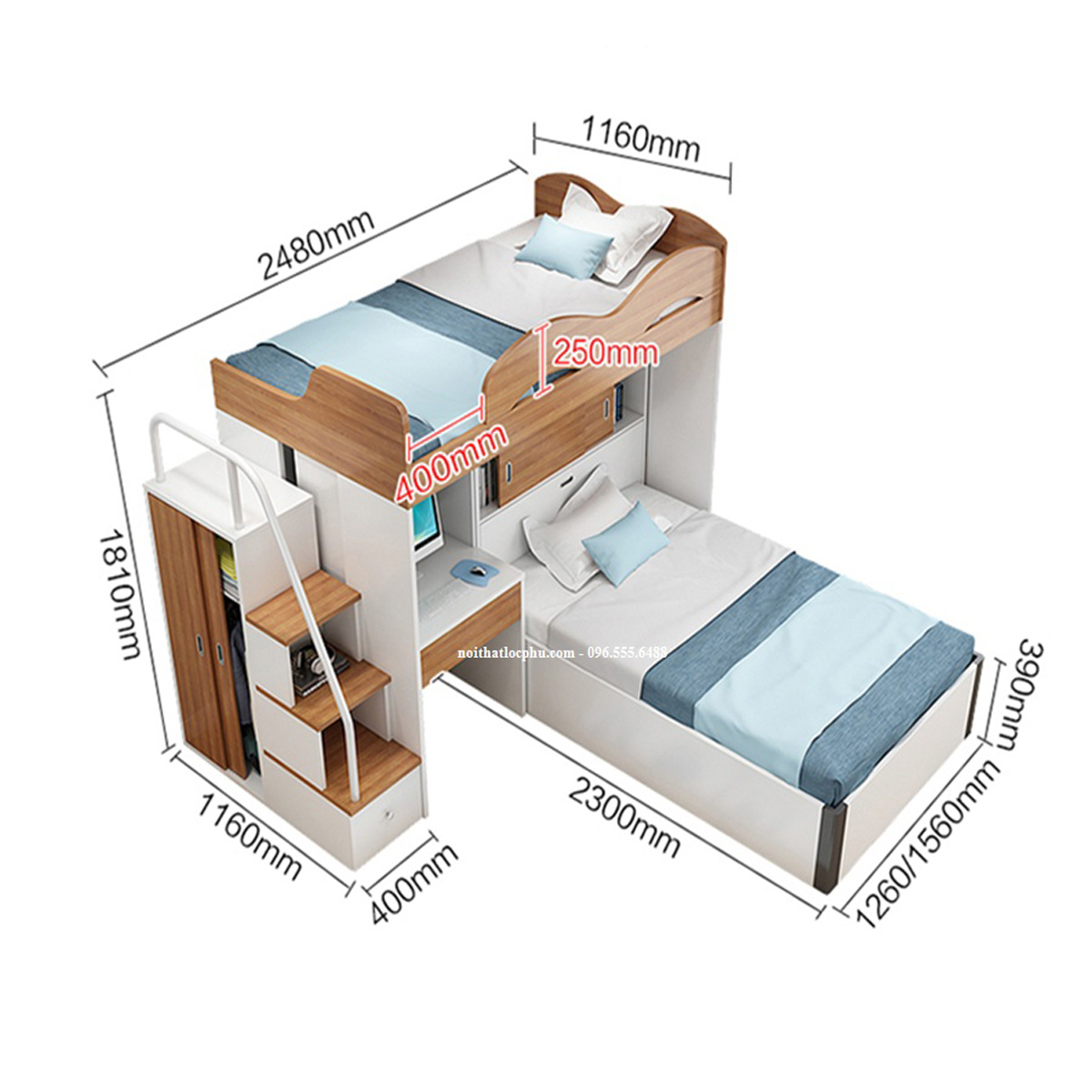 Giường tầng kết hợp tủ quần áo phong cách hiện đại | KID-GT-58 Liên hệ -