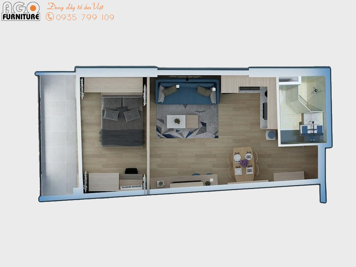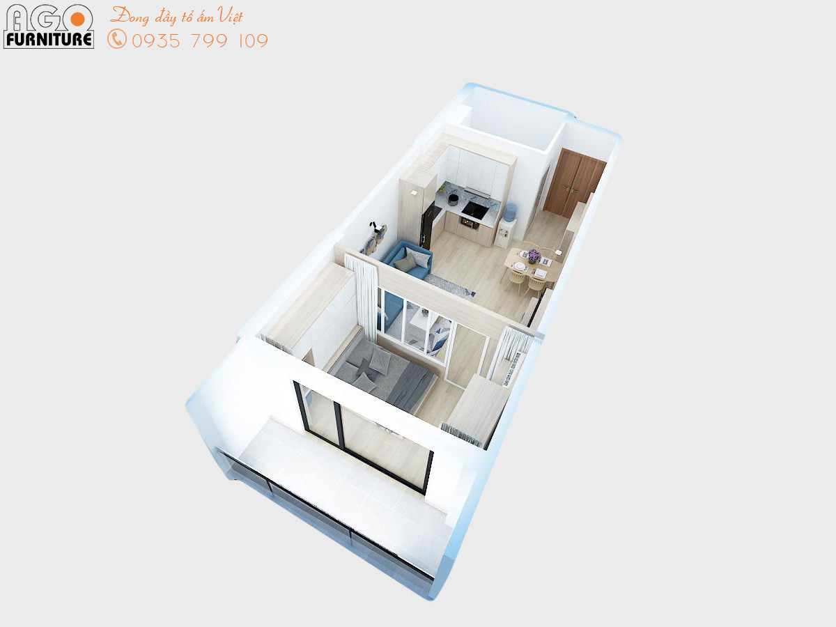 Mẫu thiết kế nội thất căn hộ chung cư Gateway 1 phòng ngủ | AGO-CC-15