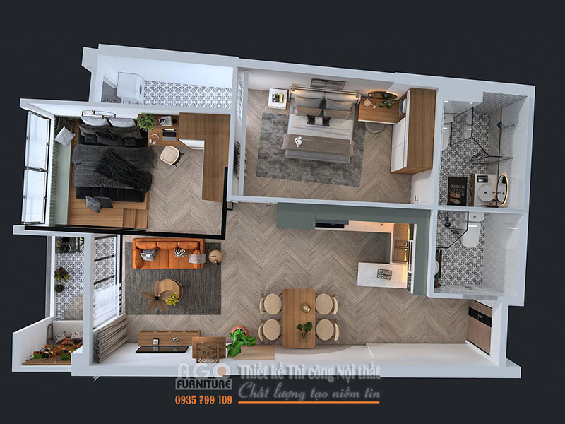 Mẫu thiết kế nội thất căn hộ chung cư Gateway 2 phòng ngủ | AGO-CC-03