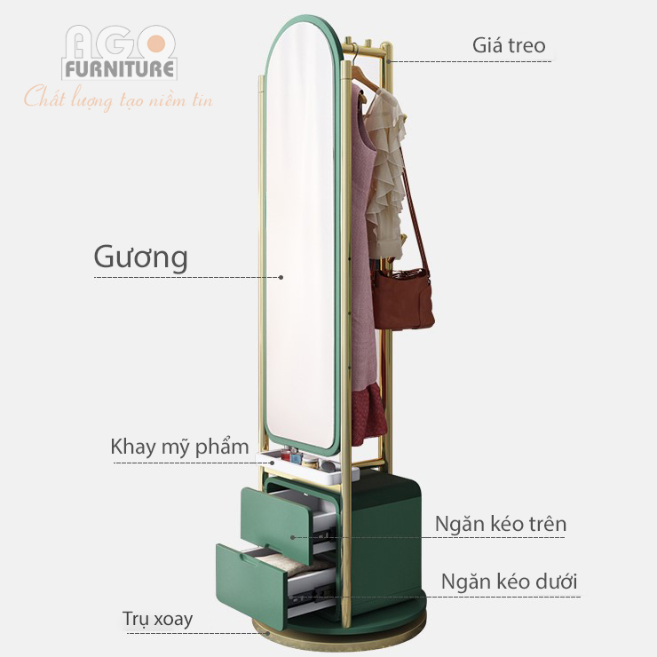 Tủ đồ xoay đa chức năng kết hợp gương soi toàn thân | TA-02